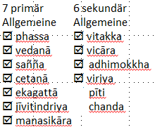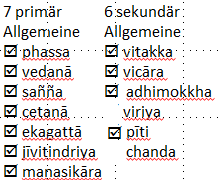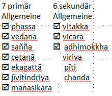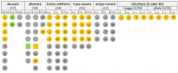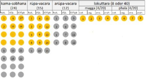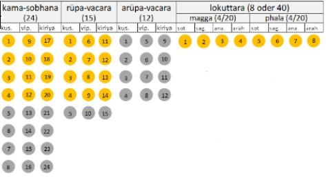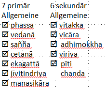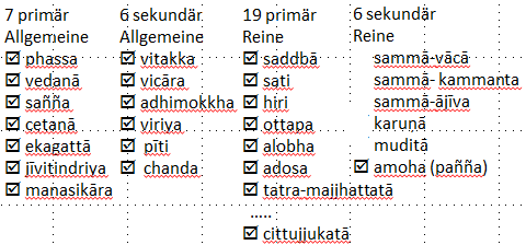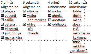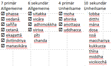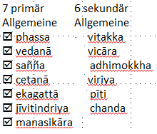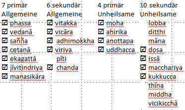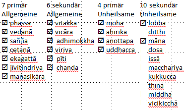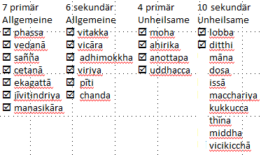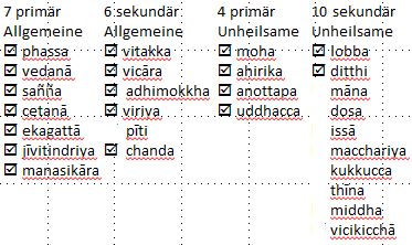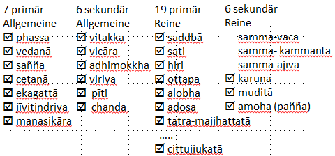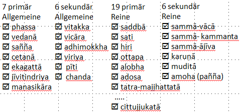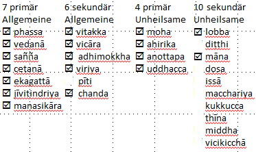 • Cetasikas nach Aufzählung [Liste der cetasikas]