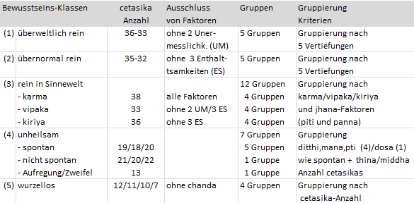 Abb. 3.6.-Gruppierung der cetasikas mit den Bewusstseinsklassen